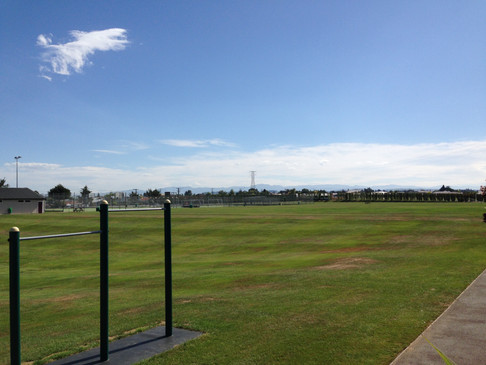 坂道が続く住宅街を抜けるとMountainview High School (マウンテンビュー ハイスクール)が見えてきます。市街地からは車で10分ほどです。